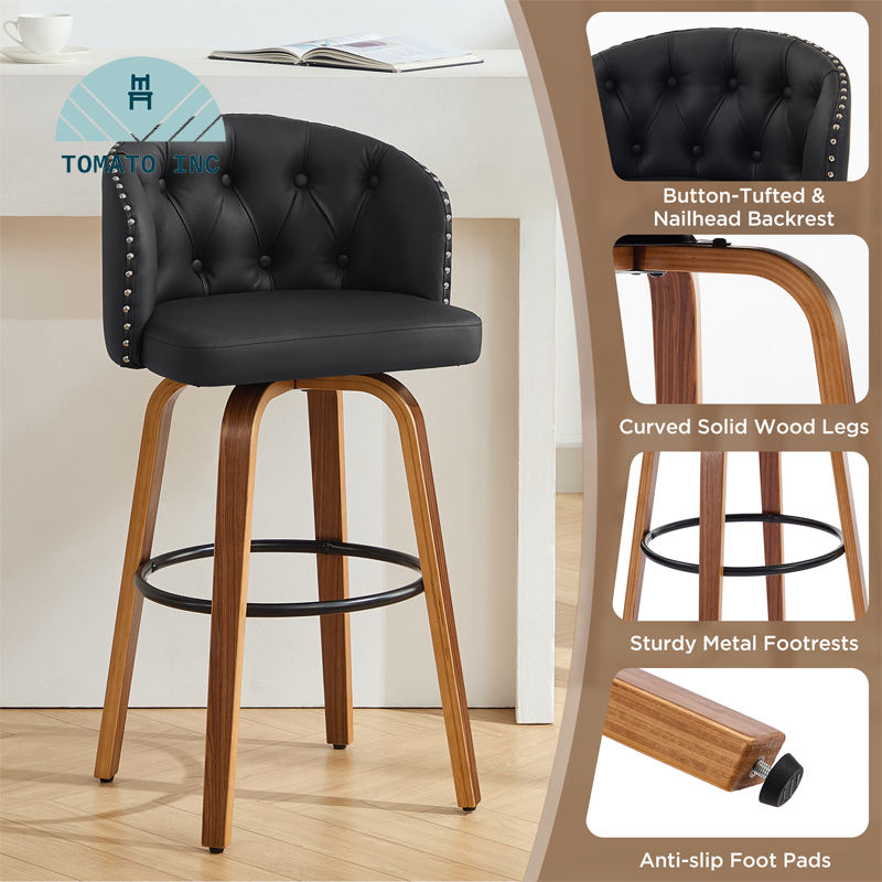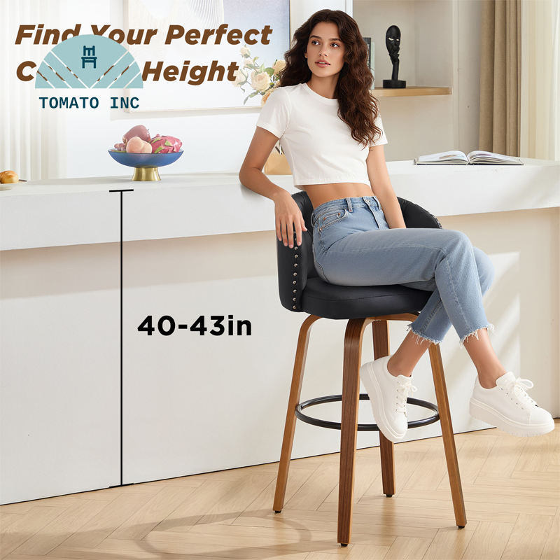 TOMATO เก้าอี้บาร์หมุนได้ PU สีดำ ปรับความสูงได้ 40-43 นิ้ว เฟอร์นิเจอร์