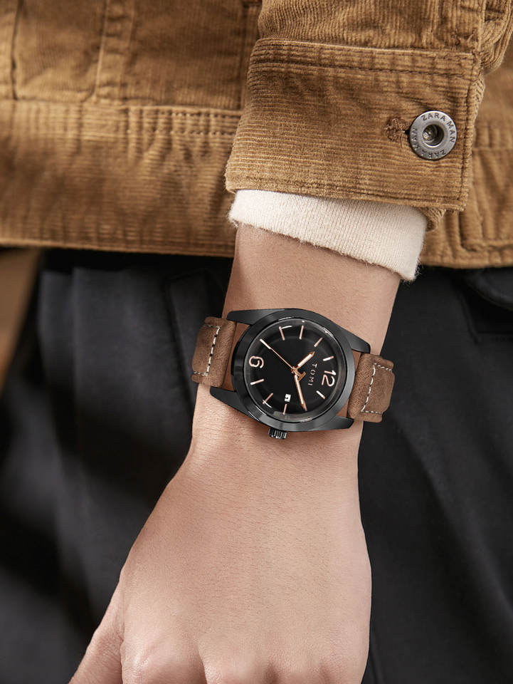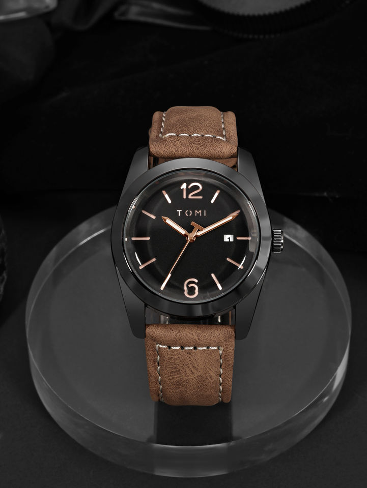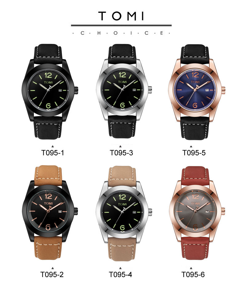 TOMI T095 Wholesale Men's Quartz Watch Round Shape Business Wristwatch High Quality Leather Strap Factory Price Daily Use Watch