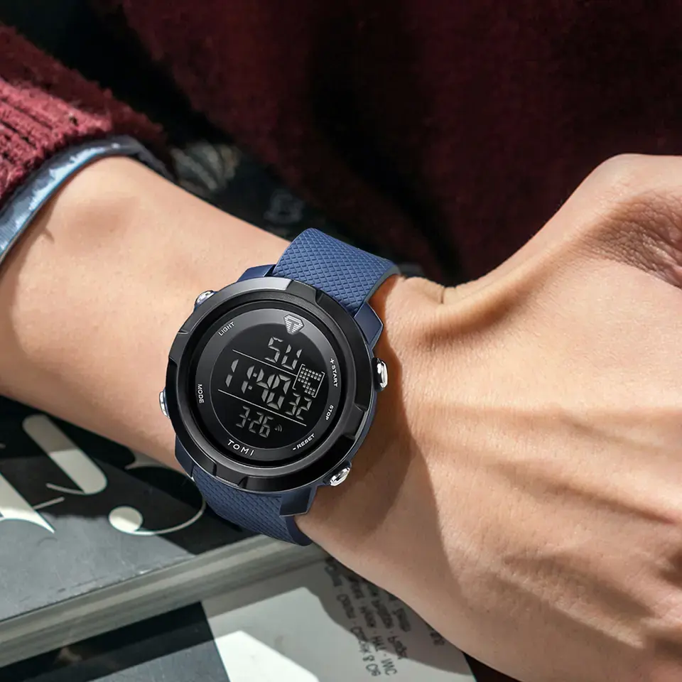 TOMI T212 นาฬิกาดิจิตอล LED สำหรับผู้ชายและผู้หญิง นาฬิกาสปอร์ตสำหรับผู้ชาย นาฬิกาอิเล็กทรอนิกส์เพื่อสุขภาพ นาฬิกาสปอร์ตอเนกประสงค์สำหรับนักเรียน พร้อมกล่อง