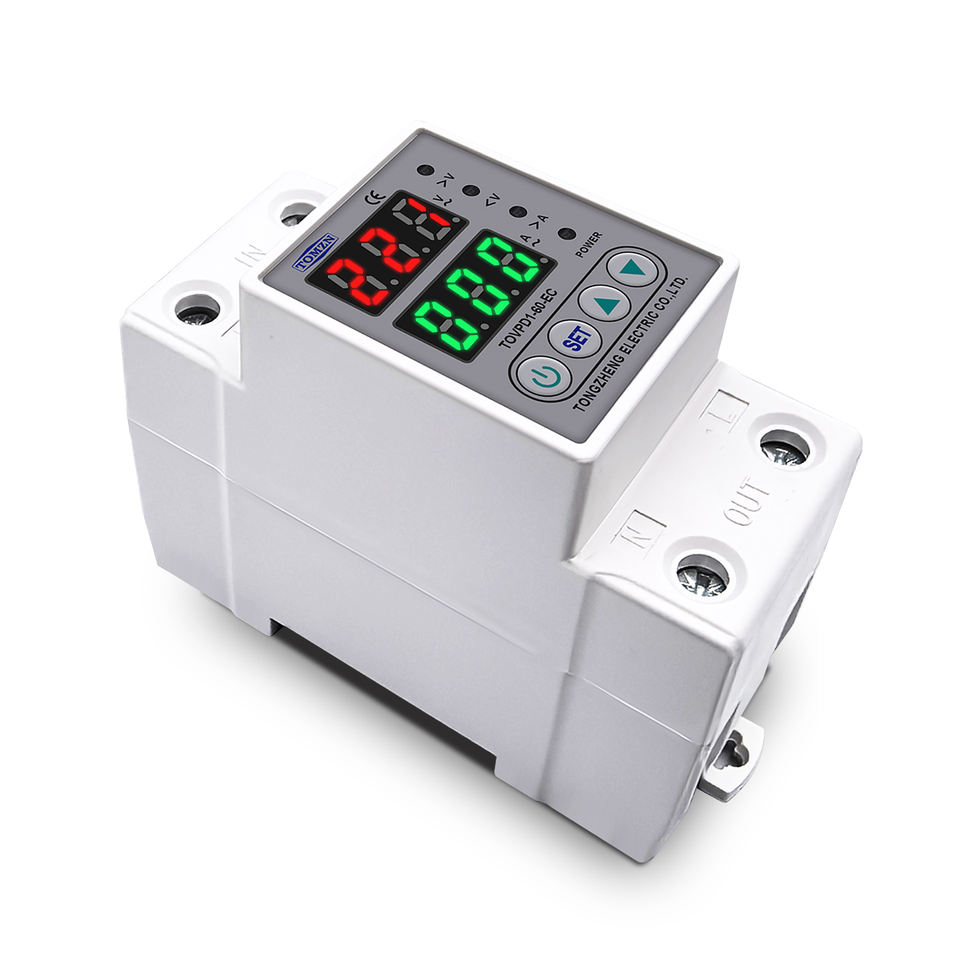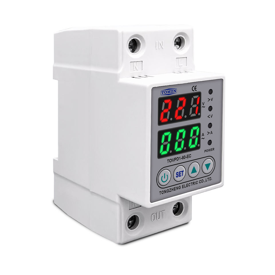 Tomzn ราง DIN 230V ปรับแรงดันไฟฟ้าเกินและใต้ได้อุปกรณ์ป้องกันรีเลย์ตัวป้องกันกระแสจำกัด63A H51