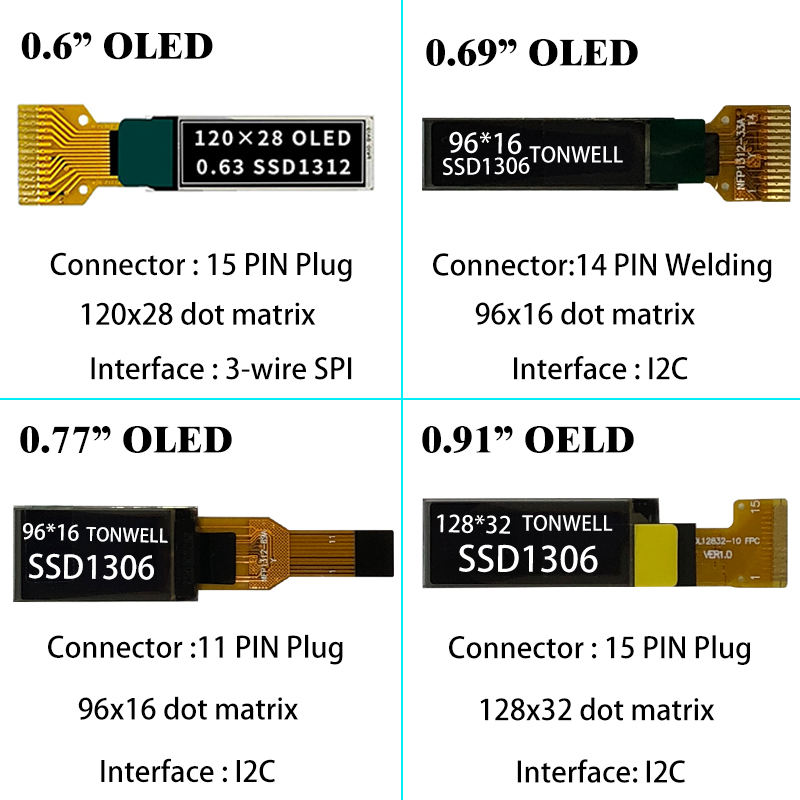 หน้าจอไมโคร OLED TONWELL 0.42 / 0.69 / 0.91 / 1.3 / 1.54 / 2.23 นิ้ว 128x64 Ssd1306 หน้าจอ OLED 0.96 นิ้ว