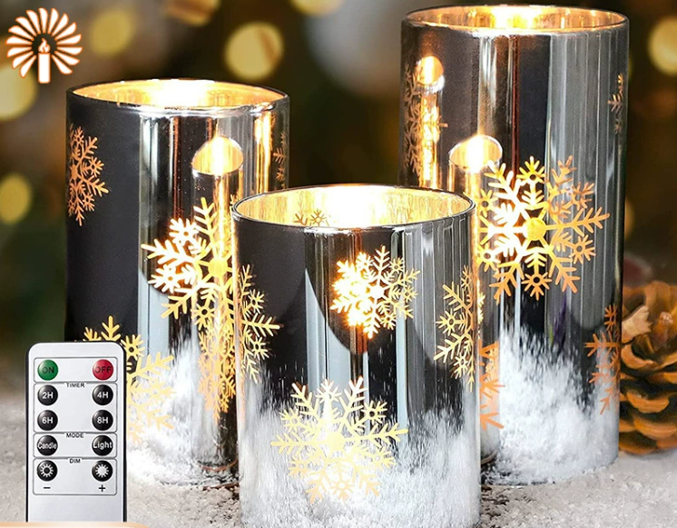 Toowin เทียนไร้เปลวแก้วพร้อมเกล็ดหิมะไฟฟ้าเทียนอิเล็กทรอนิกส์พร้อมรีโมท10ปุ่ม