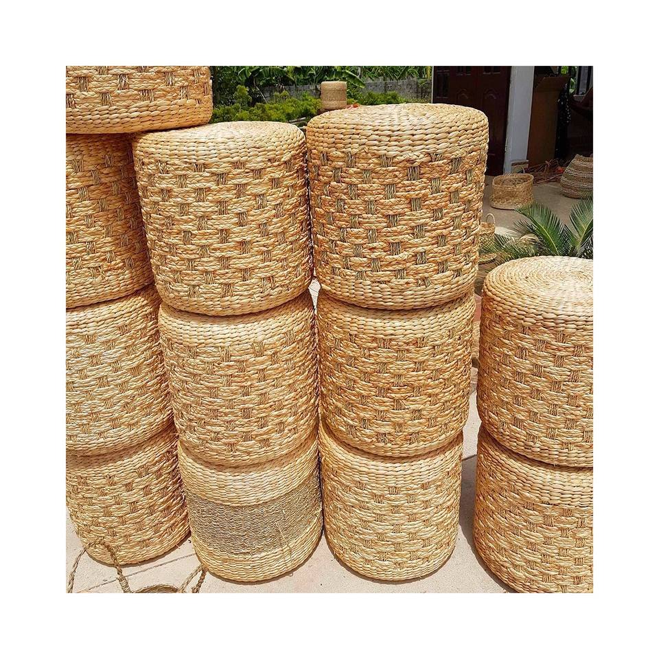 TOP ผลิตภัณฑ์เฟอร์นิเจอร์ 2024 น้ํา Hyacinth ไม้หวายพื้น POUFFE ธรรมชาติรอบออตโตมันและเบาะ Pad สําหรับห้องนั่งเล่น
