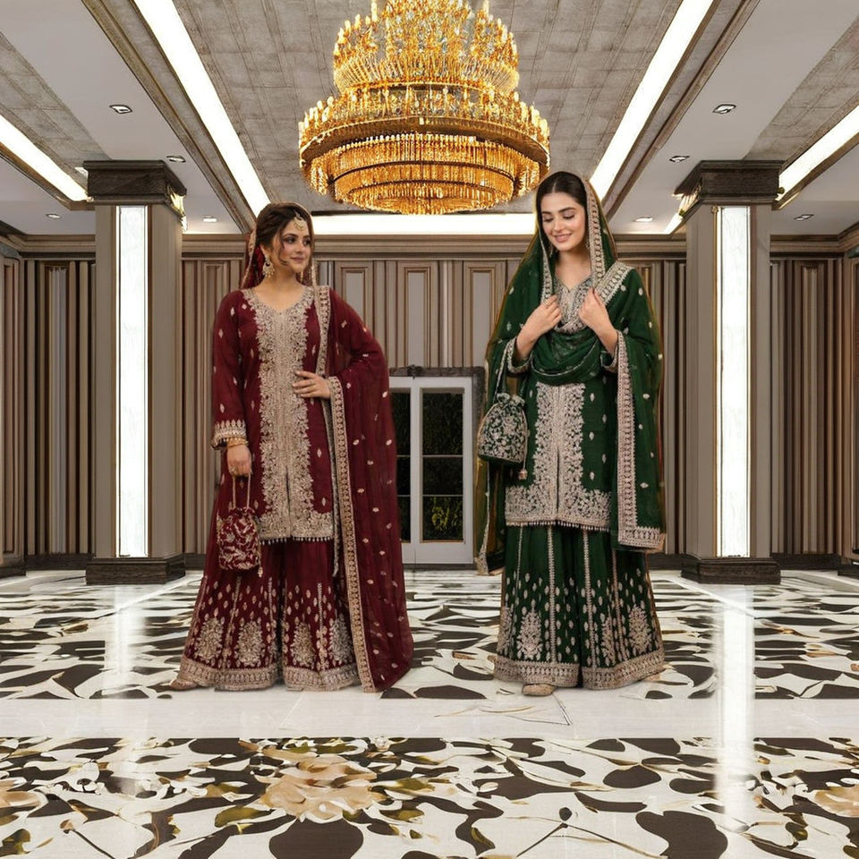 ผ้าคลุมไหล่ TOP PLAZZO วินเทจ ผ้าฟูซ์จอร์เจตต์เนื้อหนา ปักลายโซ่พร้อมงานลูกไม้ Latkan แห้งเร็ว เหมาะสำหรับงานปาร์ตี้
