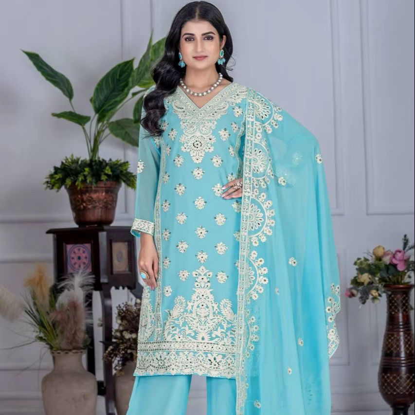 ชุดทำงานทรงหลวมสไตล์วินเทจ TOP PLAZZO สำหรับฤดูร้อน พร้อมงานปักเลื่อมผ้าจอร์เจต์เทียม