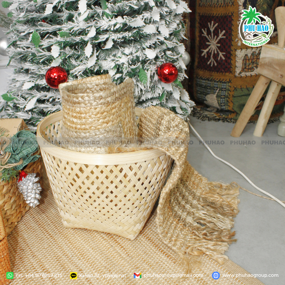 ตะกร้าไม้ไผ่ของขวัญสำหรับเก็บของในครัวเรือนที่มีสีสันและเป็นมิตรกับสิ่งแวดล้อมผลิตในเวียดนาม