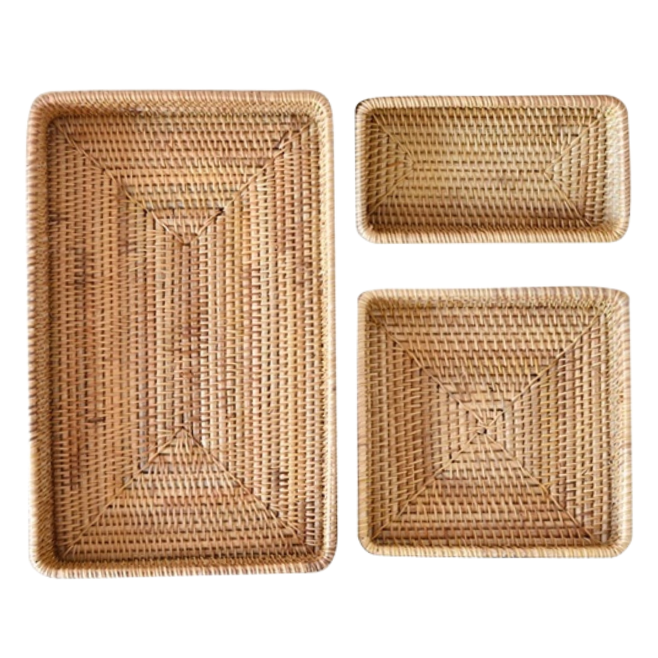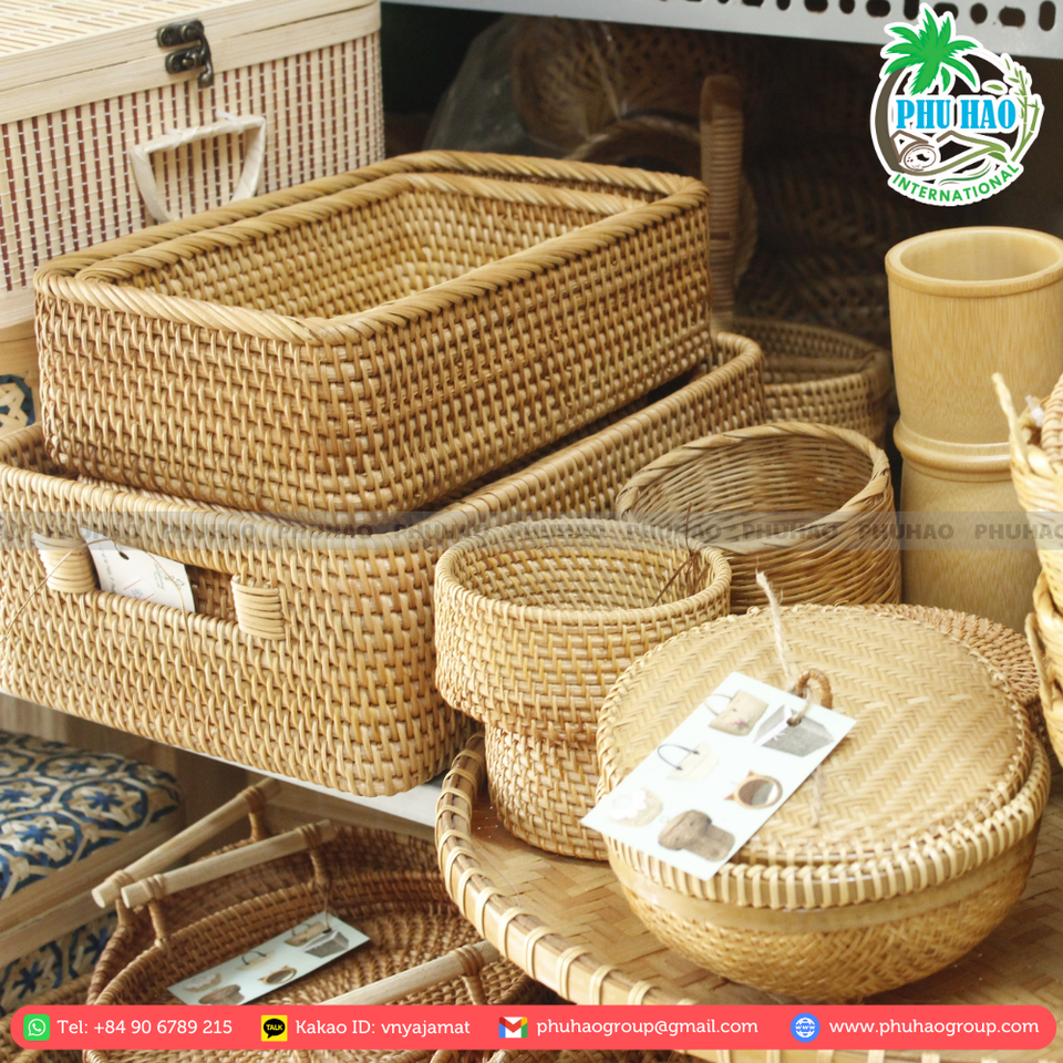 ถาดหวายสานมือเวียดนามแบบปรับแต่งได้สำหรับภาชนะบรรจุอาหารเครื่องใช้ในครัว