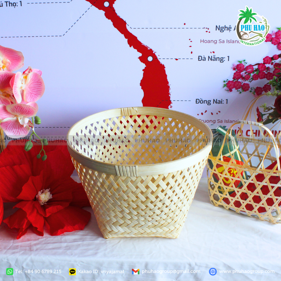 ตะกร้าไม้ไผ่อเนกประสงค์ของขวัญออกแบบมาสำหรับเก็บของในห้องครัวและการจัดระเบียบในครัวเรือนผลิตในเวียดนาม