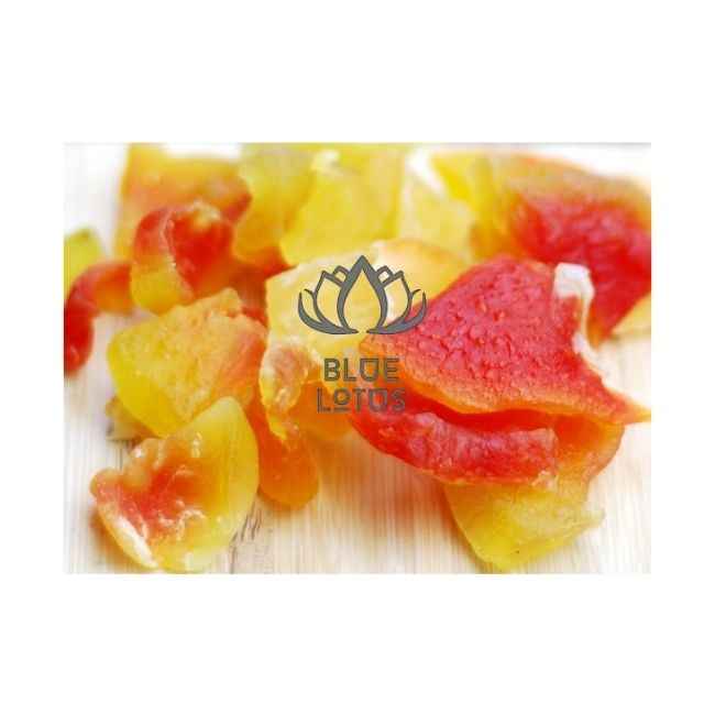 มะละกอแห้งคุณภาพเยี่ยม ปี 2026 สำหรับตกแต่งขนมและงานอบขนม ผลไม้เขตร้อนแท้ สะอาด ปลอดภัย เกรดมืออาชีพ แบบหั่นเป็นชิ้น