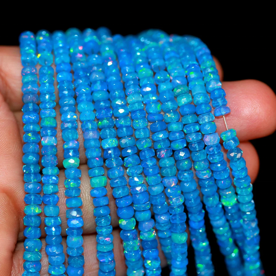 ลูกปัดแทนซาไนต์บลูโอปอลธรรมชาติคุณภาพสูง รูปทรงรอนเดลล์ ขนาด 3.5-5 มม. ความยาว 16 นิ้ว ลูกปัดโอปอลไฟ สำหรับทำเครื่องประดับ