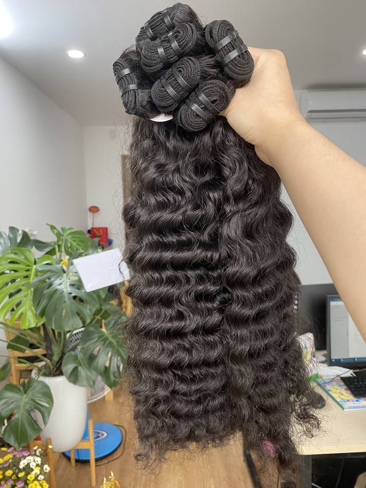 [คุณภาพสูงสุด] ผมต่อ & วิกผมคน100% บริสุทธิ์จากกัมพูชายังไม่ผ่านกระบวนการผมดัดลอนลึกเป็นลอนแบบคู่