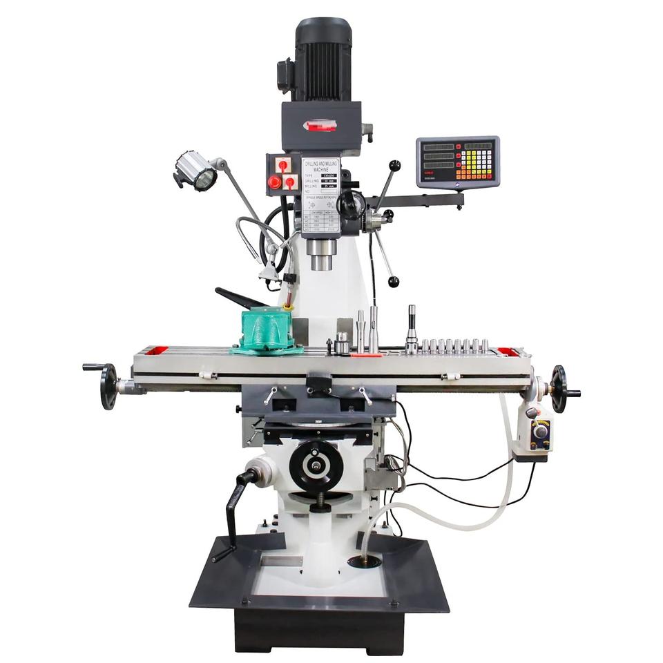 เครื่องกัดเจาะงานหนักขนาด 10x50 นิ้ว รุ่นขายดี พร้อมโต๊ะป้อนอัตโนมัติ 3 แกน DRO OEM DIY ผลิตในสหรัฐอเมริกา รับประกัน 1 ปี