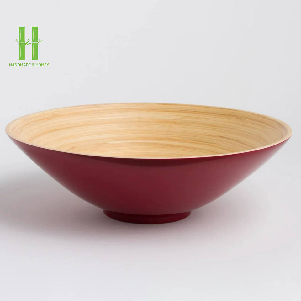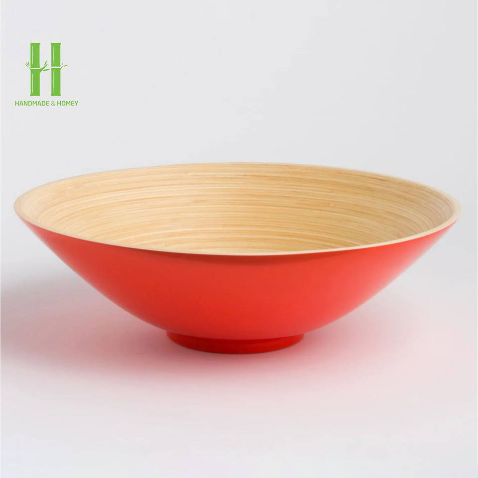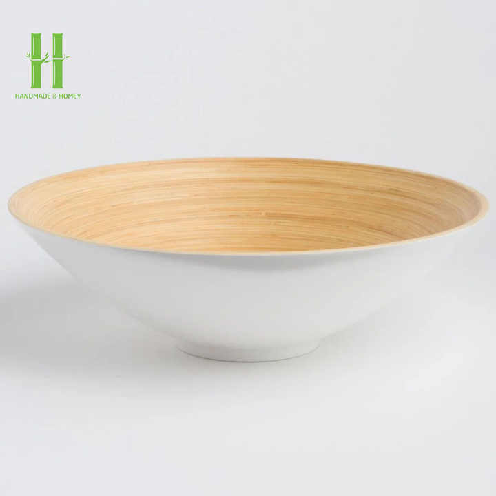 สินค้าขายดี ชามสลัดไม้ไผ่เคลือบเงาทำมือ เป็นมิตรกับสิ่งแวดล้อม ใช้กับไมโครเวฟได้ ทนทาน สำหรับเครื่องครัว ราคาถูกจากเวียดนาม