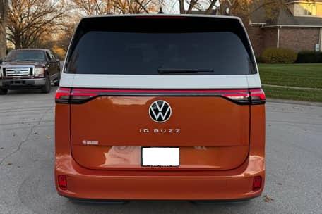 รถยนต์โฟล์คสวาเกน ID รุ่นขายดีที่สุดประจำปี 2025 บัซ รุ่นที่ 1, มอเตอร์ไฟฟ้าเดี่ยว 282 แรงม้า, สีส้มพลังขันและสีขาวแคนดี้