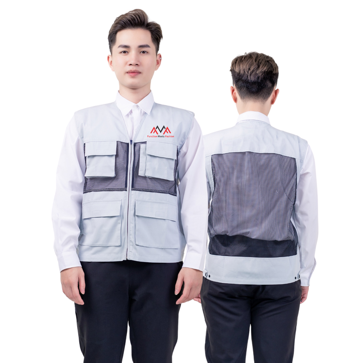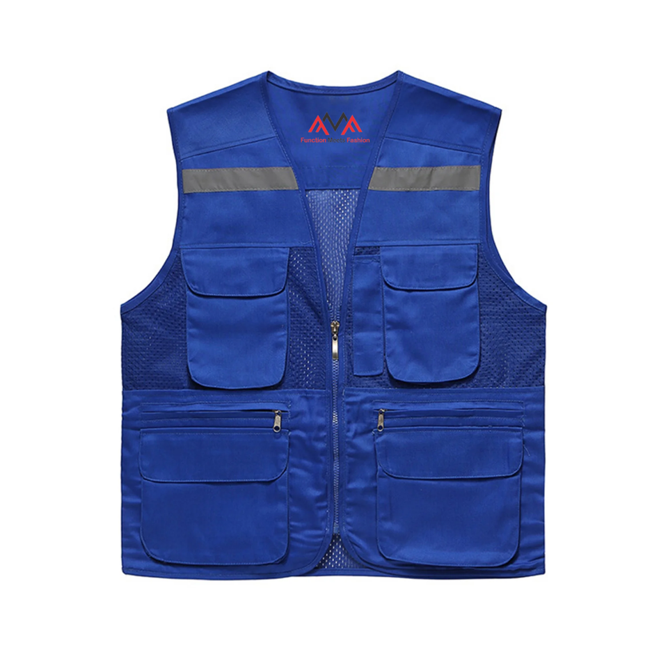 เสื้อกั๊กนิรภัย FMF มีซิปสะท้อนแสงมีหลายกระเป๋าเสื้อกั๊กสำหรับวิศวกร/ก่อสร้าง