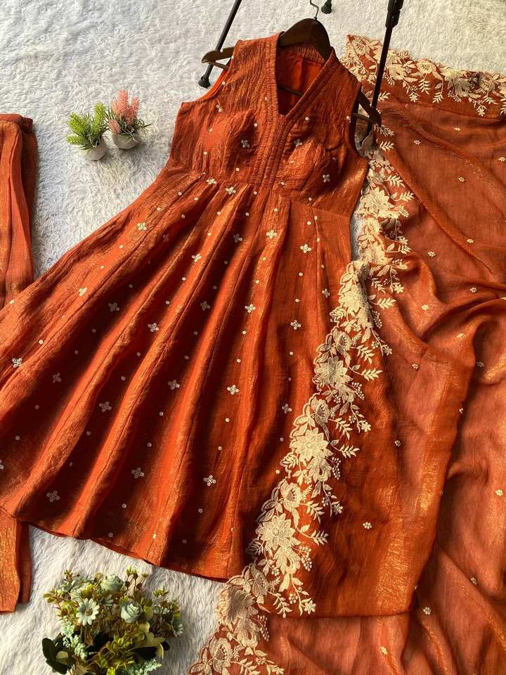 Sharara dupatta ชุดใส่ทำงานปักผ้าไหมกรุบกรอบ