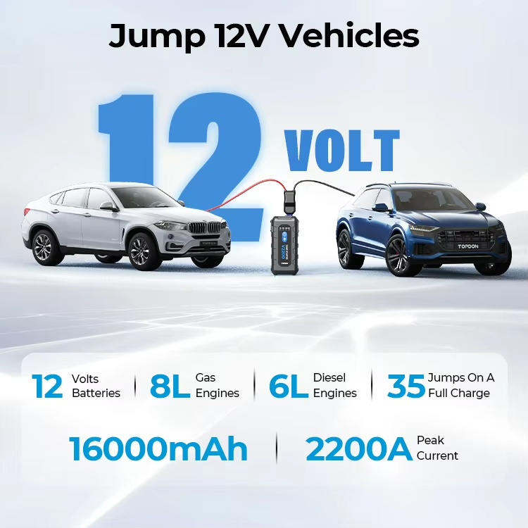 Topdon 2200A V2200รถแบบพกพา12V จั๊มเปอร์กล่องจั๊มเปอร์แบตสำรองสำหรับผู้เริ่มต้นกระโดดแบบมืออาชีพ