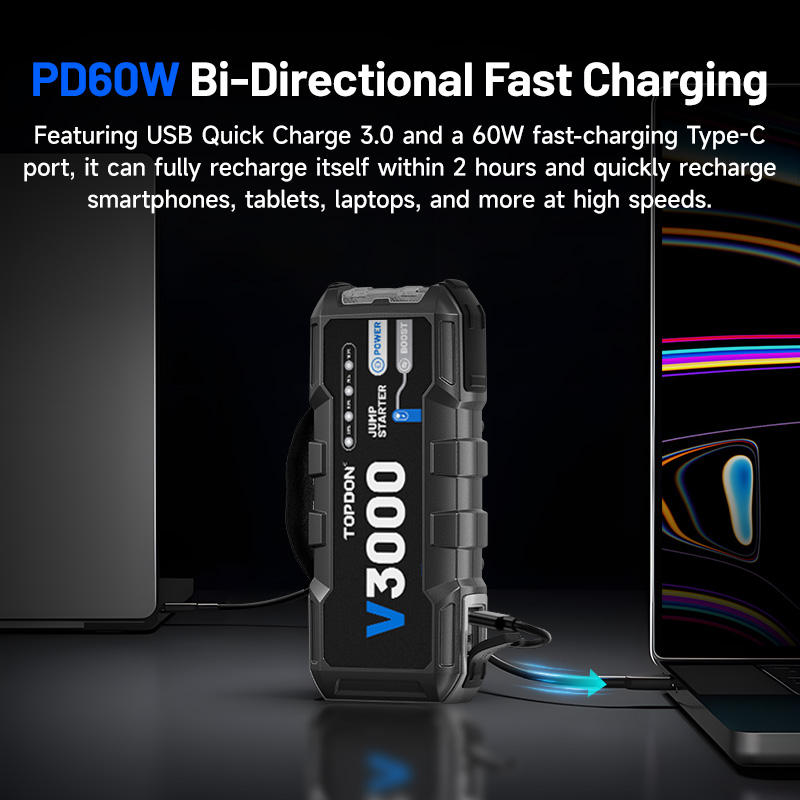 TOPDON V3000 3000A 9L แก๊ส 7L ดีเซล เครื่องช่วยสตาร์ทรถยนต์แบบพกพา แบตเตอรี่สำรองสำหรับรถยนต์ 24000mAh