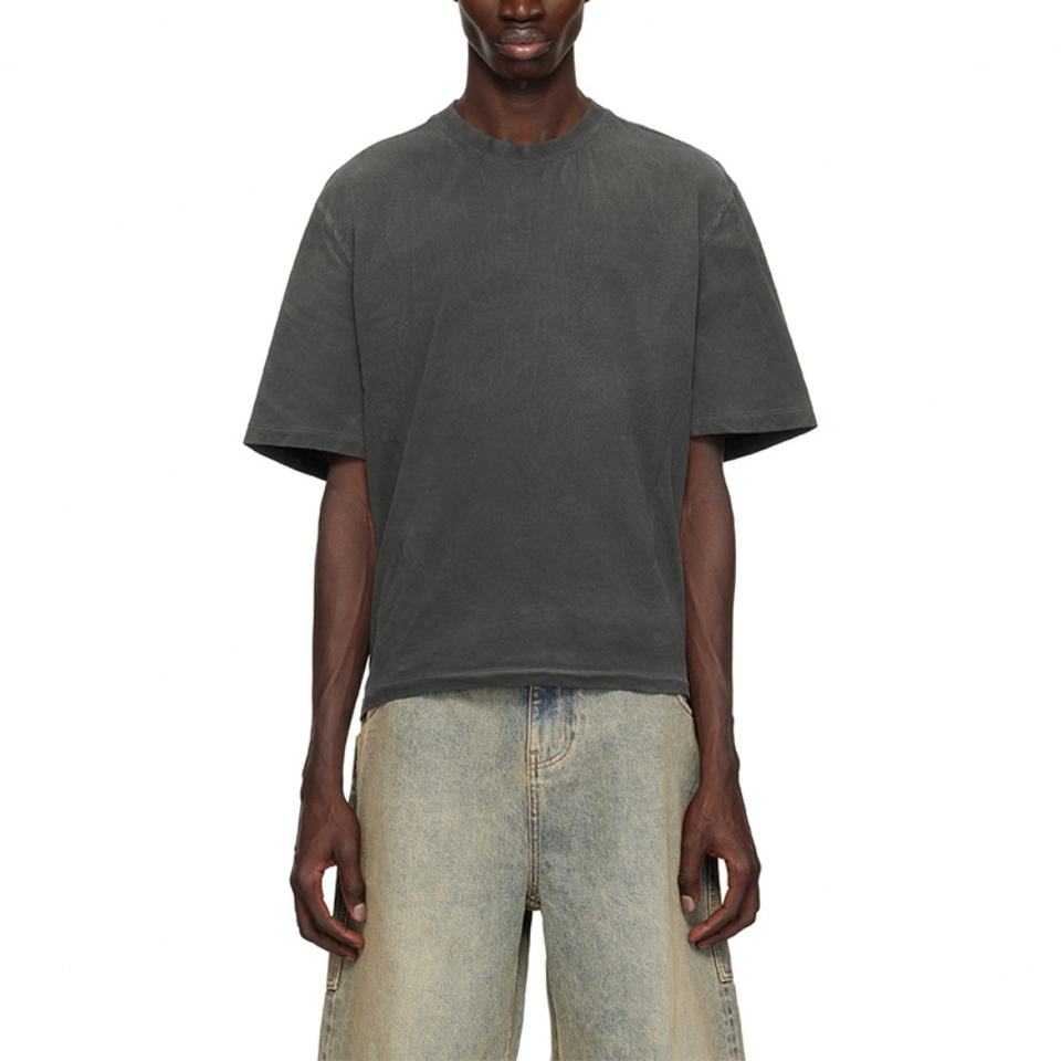 เสื้อยืดทรงบ็อกซี่ผู้ชาย TOPSHOW ผ้าฝ้าย แขนสั้น ไหล่ตก ทรงหลวม สไตล์เรียบง่าย สีพื้น ล้างสีแบบ Acid Wash สำหรับผู้ชาย