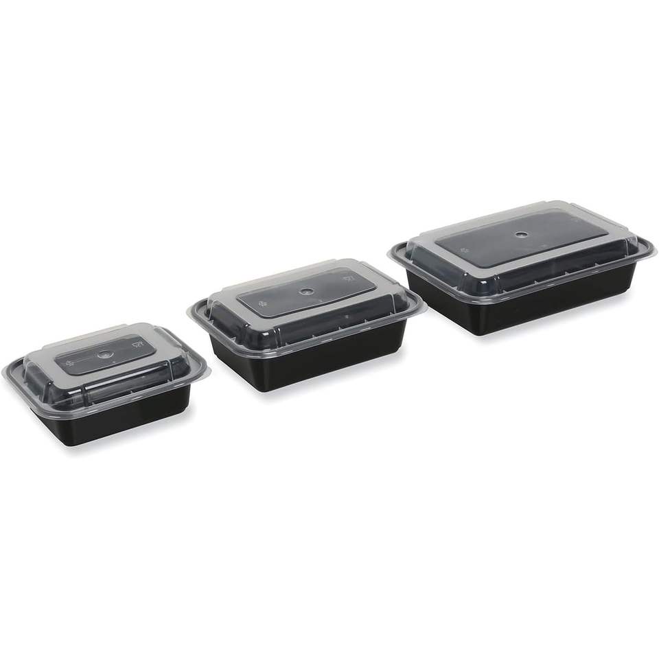 กล่องพลาสติกใส/สีดำสำหรับเก็บอาหารเข้าไมโครเวฟได้ ขนาด 12 ออนซ์ พร้อมฝาปิด 5.78 x 4.52 x 2.24 นิ้ว บรรจุ 150 กล่อง/ลัง