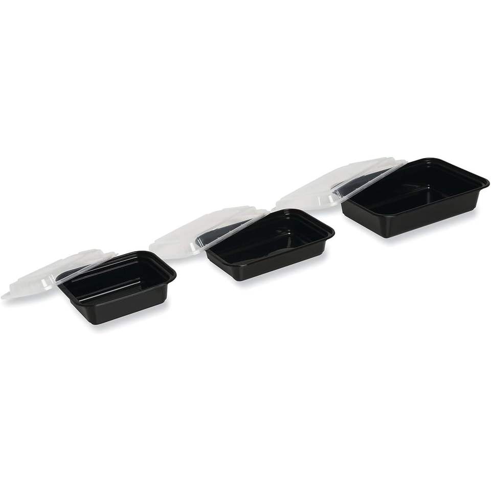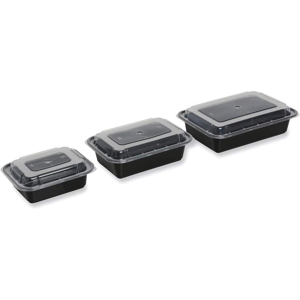 กล่องพลาสติกใส่อาหารแบบใช้แล้วทิ้งสีดำ ขนาด 32 ออนซ์ ยี่ห้อ TORECT32 ฝาปิดสำหรับแช่แข็งและใช้กับไมโครเวฟได้ เหมาะสำหรับอาหารแบบซื้อกลับบ้าน ขนาด 18.534x9.2534x18.934 นิ้ว บรรจุ 150 กล่อง/ลัง