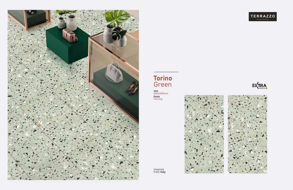 กระเบื้องพอร์ซเลนเคลือบเงาอินเดียเกรดพรีเมียมลายเทอร์ราซโซ่สีเขียวโทริโน่