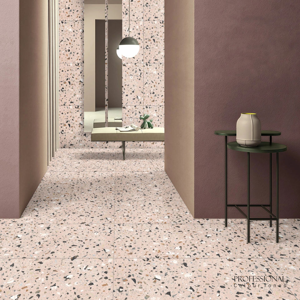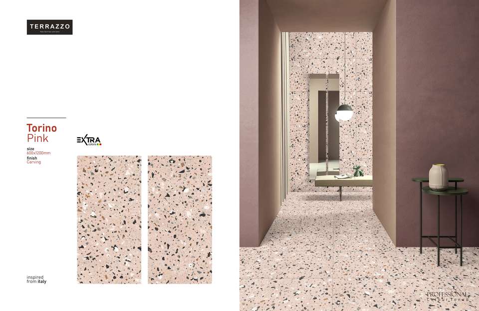 กระเบื้องพอร์ซเลนอินเดียเกรดพรีเมียมลายเทอร์ราซโซสีชมพูแบบแกะสลัก รุ่นทอร์นิโน