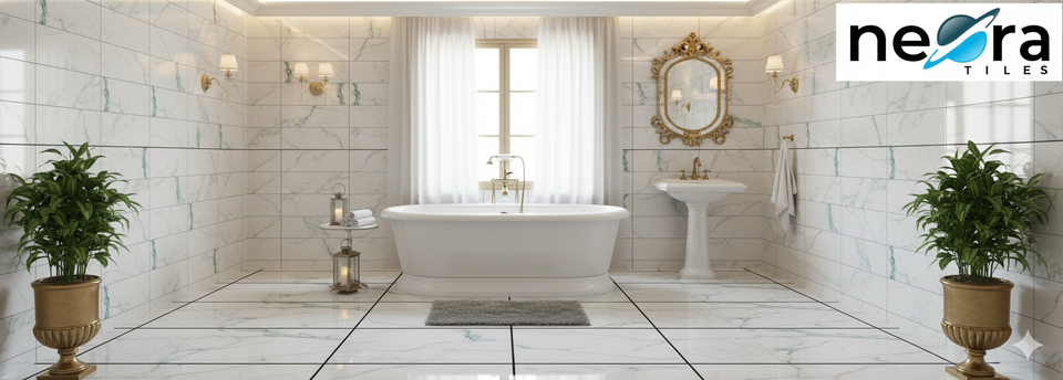 กระเบื้องพอร์ซเลนสีขาวเงา รุ่น TORONA WHITE ขนาด 600x1200 มม. สำหรับปูพื้นห้องน้ำ ผนังภายในห้องโถง และวิลล่า