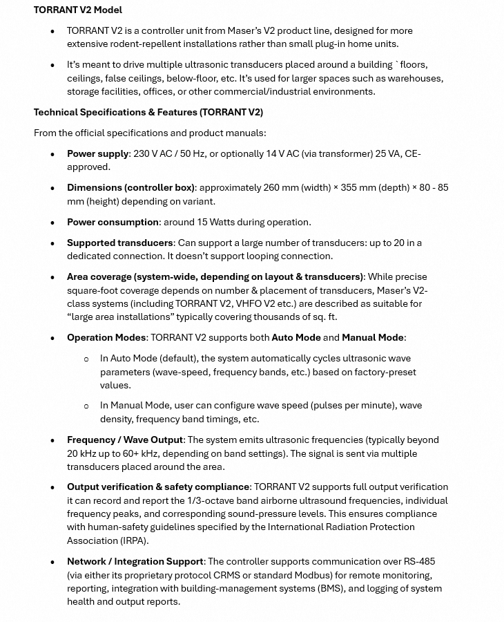 ระบบควบคุมการไล่หนู TORRANT V2 สำหรับอุตสาหกรรมและพาณิชย์ ประสิทธิภาพสูง ปลอดภัยต่อสัตว์ป่า