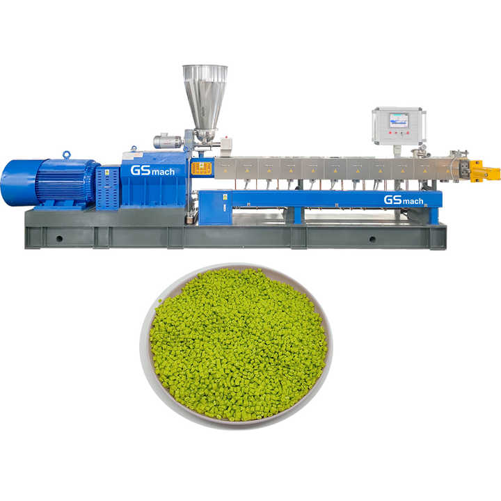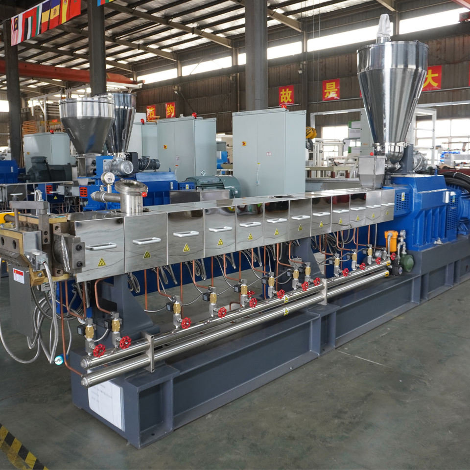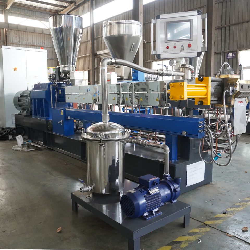 เครื่องอัดรีดสกรูคู่ผสมพลาสติกเครื่องทำเม็ดมาสเตอร์แบทช์บรรจุในกล่องไม้
