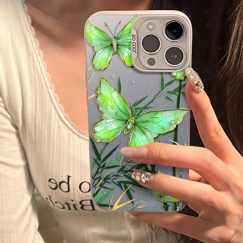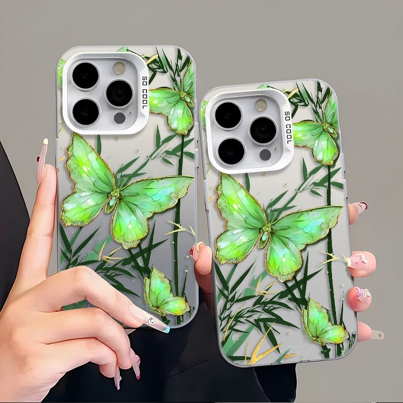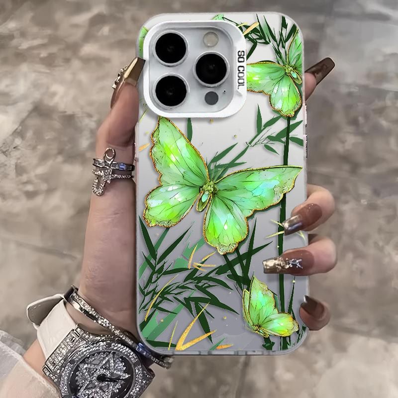 เคสโทรศัพท์มือถือกันกระแทกลายผีเสื้อสีเขียว TPU สำหรับ iPhone 17 16 15 Plus Pro MAX 14 13 12 11 x XR