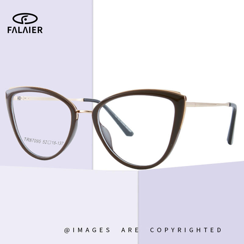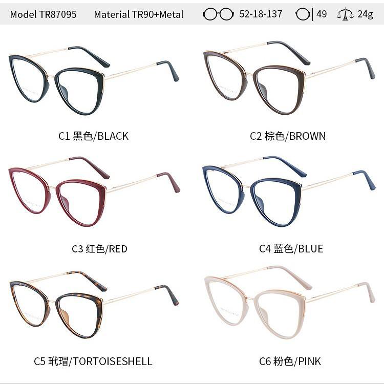 แว่นตา TR87095 ทรงกลมแบบแคทอาย กรอบโลหะ ป้องกันแสงสีฟ้า กรอบเต็ม สำหรับทุกเพศ