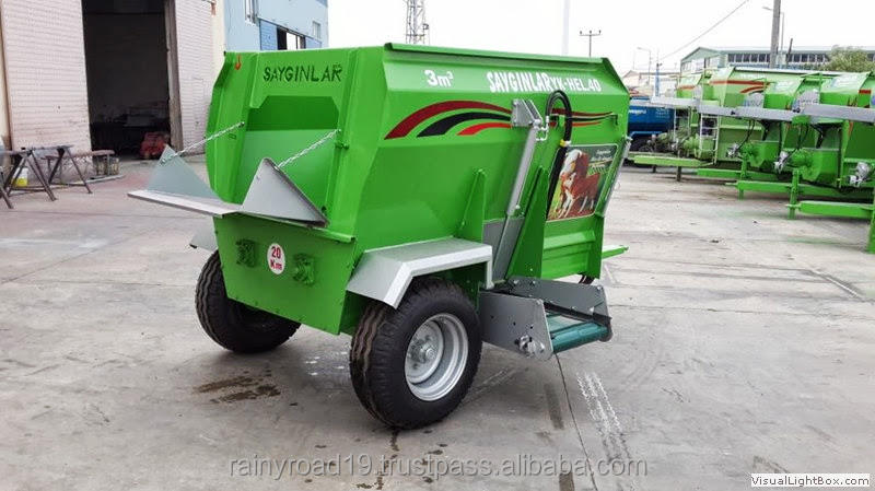รถแทรคเตอร์ PTO ขับเคลื่อนการให้อาหารวัวผสมเกวียน3m3 FEED MIXER Wagon สว่านแนวนอน