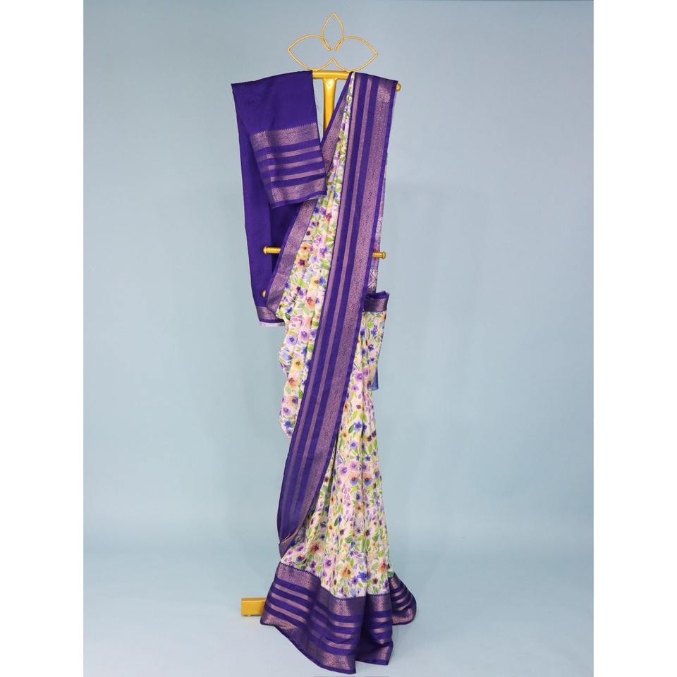 เสื้อทอผ้าทอสีม่วงพิมพ์ลายโดลาผ้าไหมแบบดั้งเดิม
