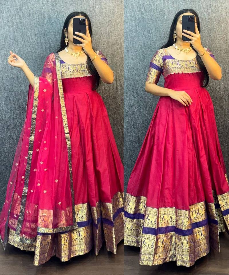 ชุดคุร์ตีผ้าไหมเนื้อนารีันเพ็ตแบบดั้งเดิม พร้อมผ้าคลุมไหล่เน็ต งานปักขอบผ้า สำหรับใส่ลำลอง ราคาขายส่ง เสื้อผ้าชาติพันธุ์ สีชมพู ผ้าฝ้าย ซักเครื่องได้