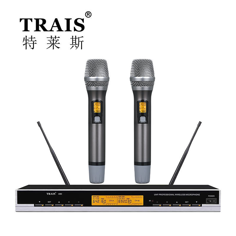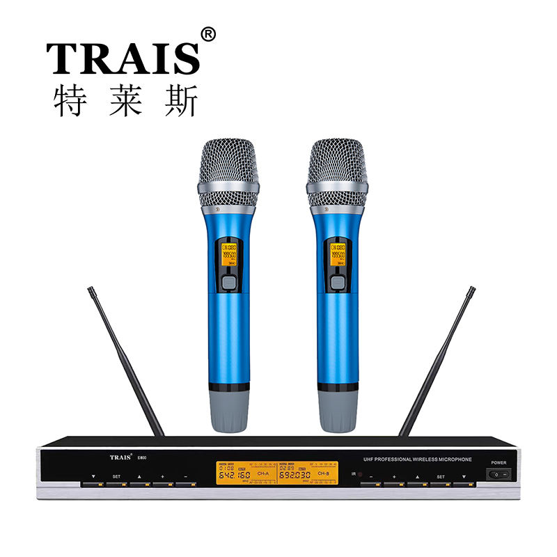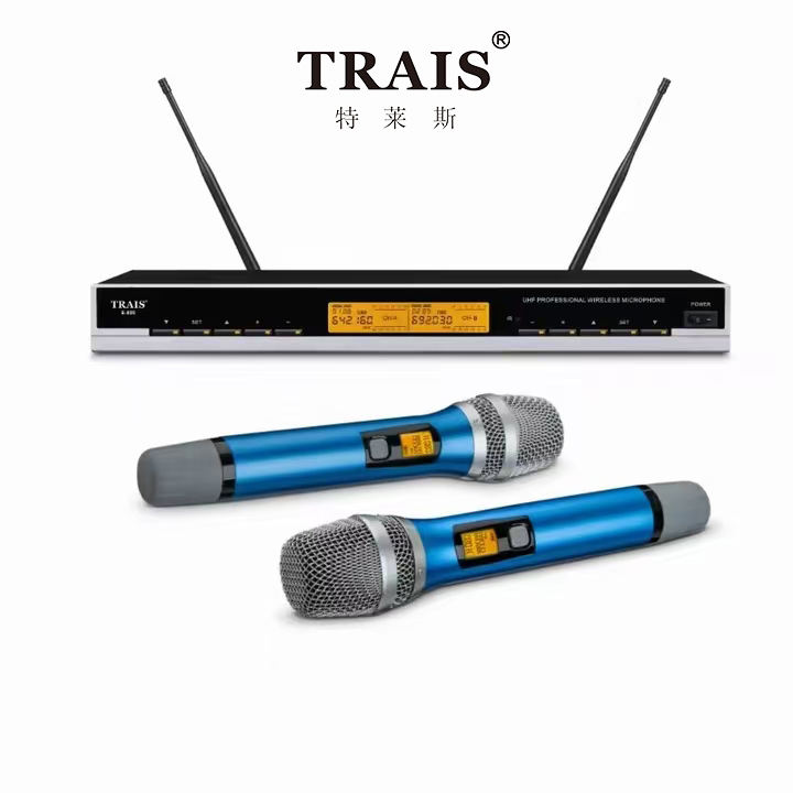 Trais ไมโครโฟนไร้สายสองช่องสีฟ้าไมโครโฟน KTV คลับไมโครโฟนคาราโอเกะ