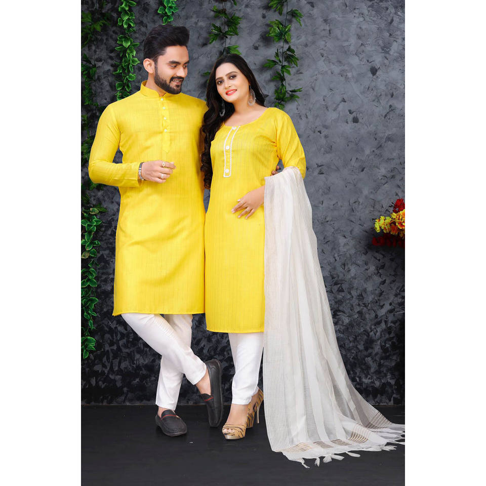 Treaditional slub ผ้าฝ้าย weving ทำงานคู่ดูใหม่สำหรับเทศกาลพิเศษสวมใส่พร้อมที่จะสวมใส่สีเหลือง