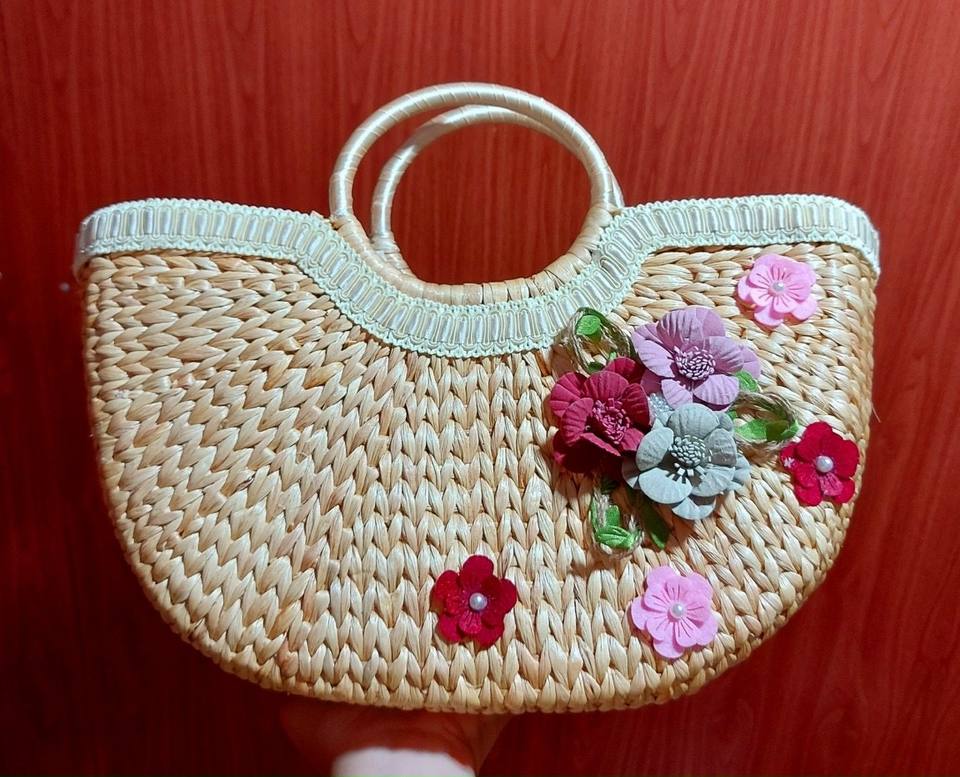 กระเป๋าถือทรงดอกบัวเวียดนามทำมือกระเป๋าหูหิ้วใส่น้ำผักตบชวา
