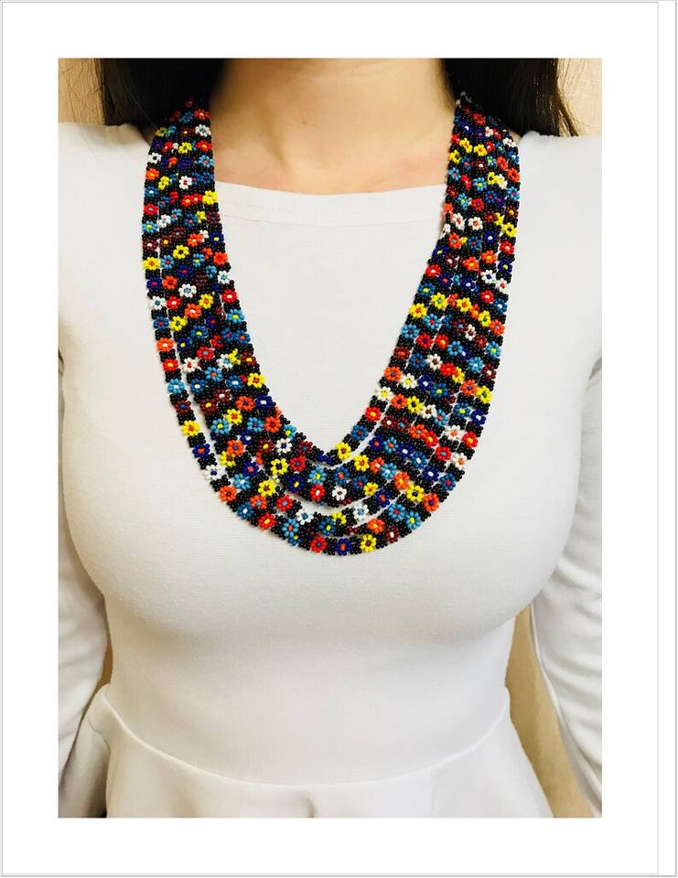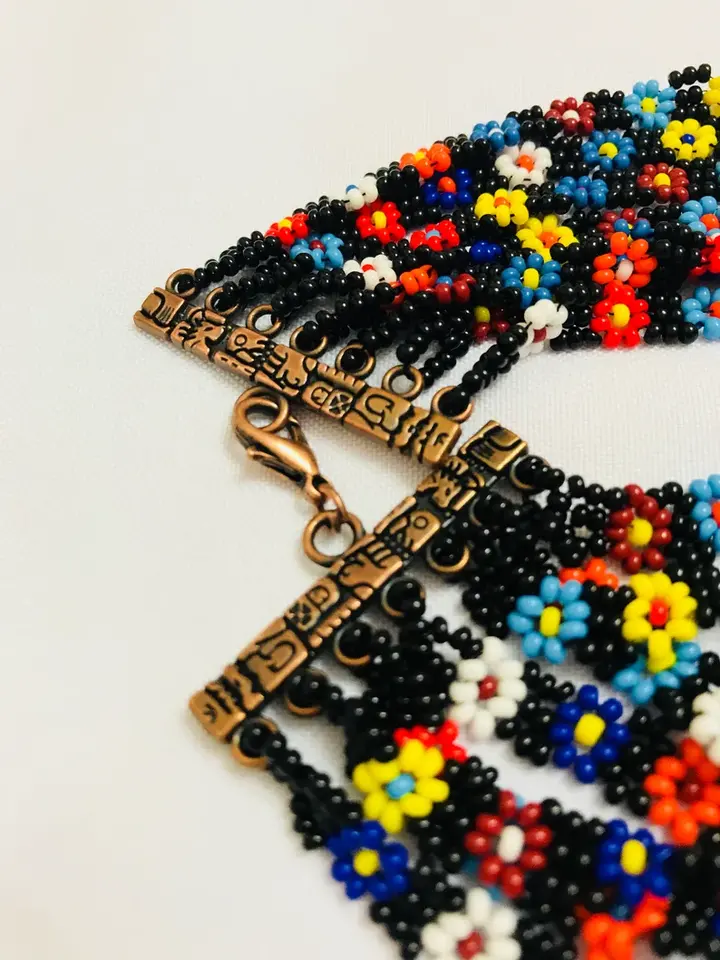 สร้อยคอดอกไม้หลากสีและสีดำแบบลูกปัดกำไลดอกเดซี่กำไลลูกปัดสีดำ, สร้อยคอดอกไม้ลูกปัดเส้นเล็ก, เครื่องประดับสไตล์อเมริกันพื้นเมือง