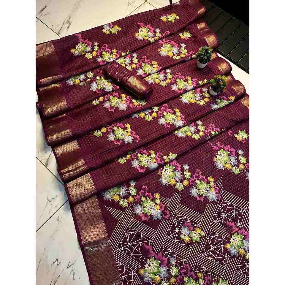 ชุดส่าหรีทำจากผ้าไหมผ้าลายโดลาผ้าแจ็คการ์ดผ้าทอพร้อมเสื้อเบลาส์แบบไม่เย็บติด