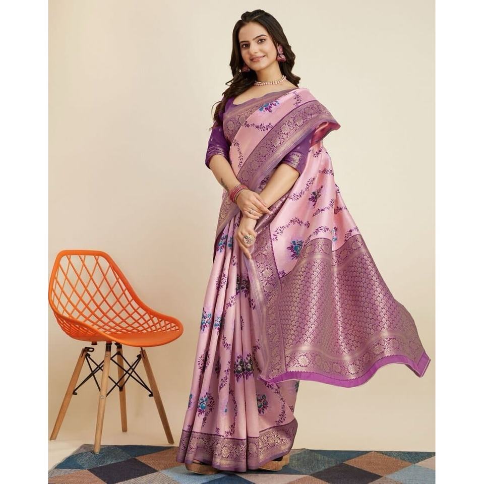 เสื้อส่าหรีใส่ทำงานผ้าไหมผ้าแจ็คการ์ดมีเสื้อไม่ติดเสื้อผ้าสีชมพู