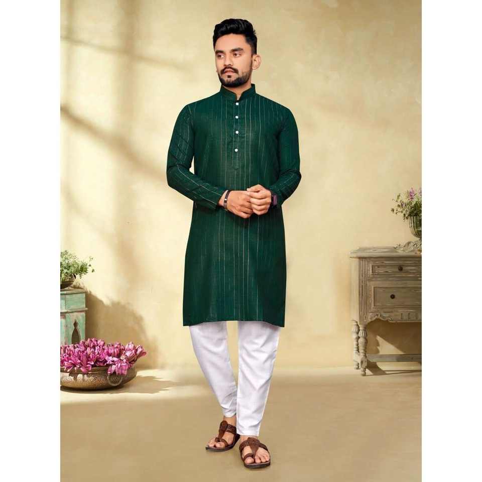 Kurta ทอผ้ายอดนิยมสำหรับผู้ชายที่มีสีเขียวเพย์จามา