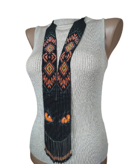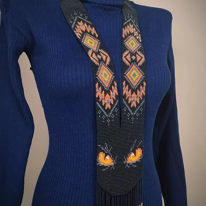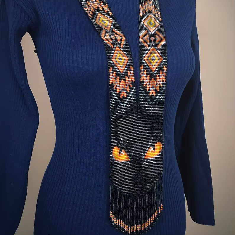 สร้อยคอประดับลูกปัดสีดำสุดฮิต "ดวงตาหมาป่า" งานแฮนด์เมดลายชนเผ่ารูปทรงเรขาคณิต เครื่องประดับยูเครนลึกลับ เหมาะสำหรับเป็นของขวัญ