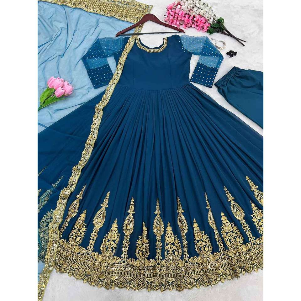ชุดเดรสผ้าจอร์เจียแบบถักลายทันสมัยมีก้นเย็บปักด้วยผ้า Dupatta Rama
