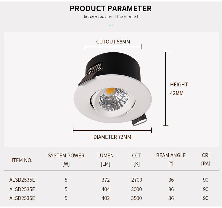 2700K/3000K/3500Kอุณหภูมิสี (CCT)