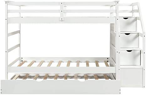 เตียงสองชั้นเด็กไม้จริง ดีไซน์ทันสมัย พร้อมลิ้นชักบันไดแบบเต็มตัว ยี่ห้อ TRIHO Furniture