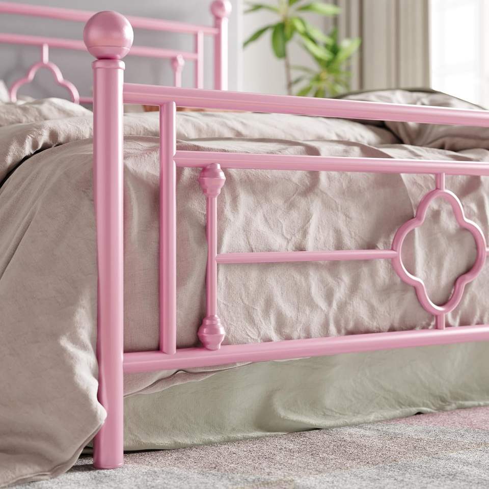 TRIHO THF-1576 Modern Design Black Metal Bed Frame Queen Size with Headboard and Footboard Single Platform