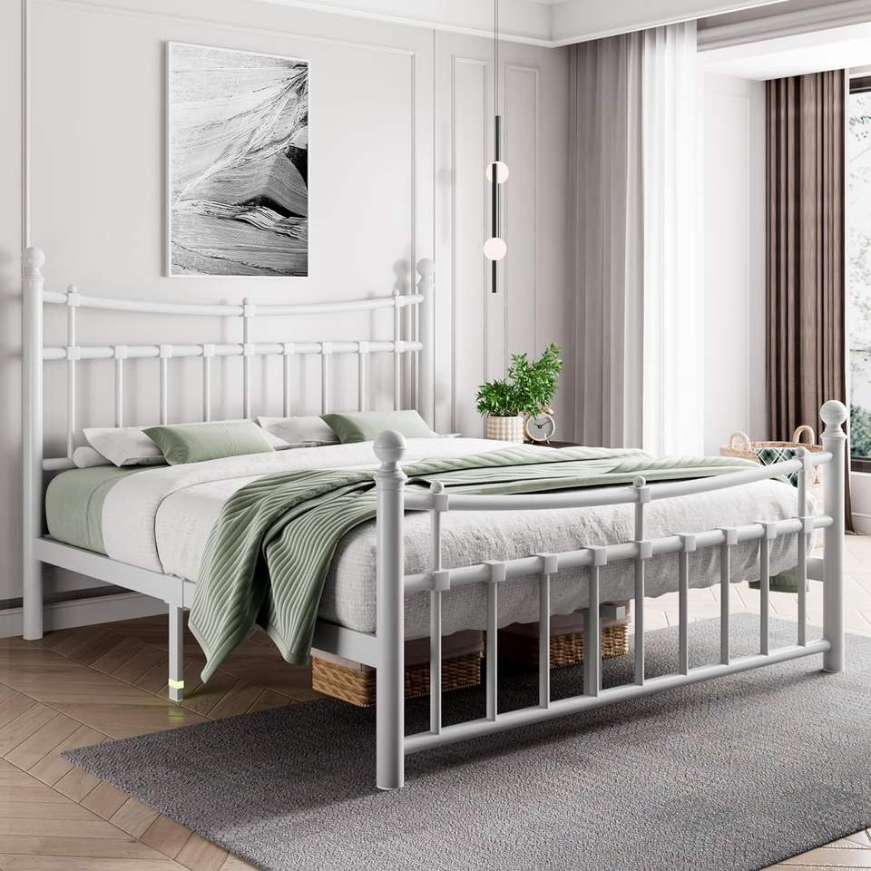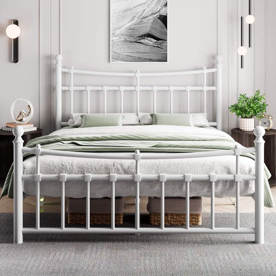 TRIHO THF-1684 โครงเตียงแพลตฟอร์มโลหะขนาดควีนไซส์จากโรงงานเวียดนามพร้อมหัวเตียงและขาเตียงสไตล์วิกตอเรียส
