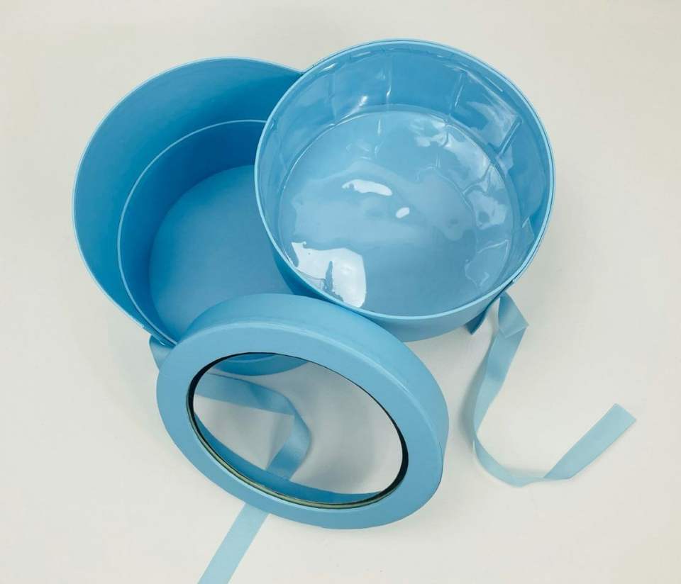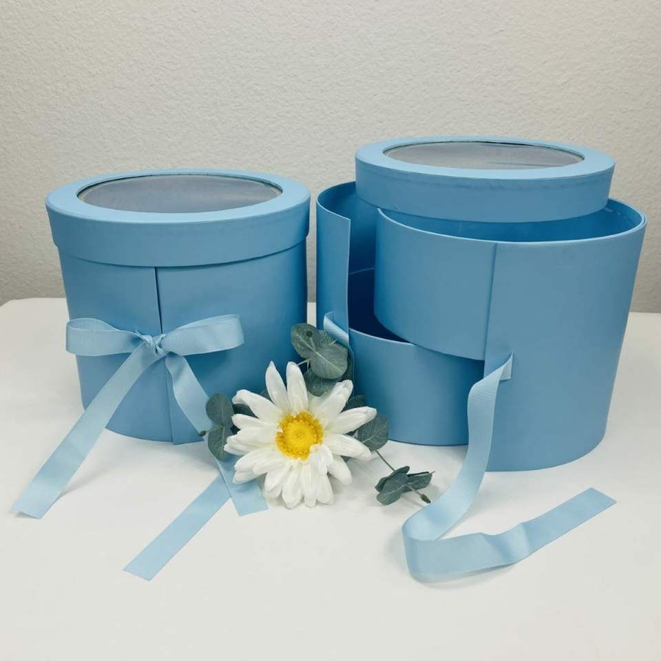 TRIHO TRb- 1479กล่องของขวัญดอกไม้ทรงกลม,กล่องของขวัญดอกไม้รูปทรงกลม2ชั้นพร้อมฝาปิดสีฟ้าน้ำทะเลสำหรับตกแต่งงานเลี้ยงวันเกิดงานแต่งงาน