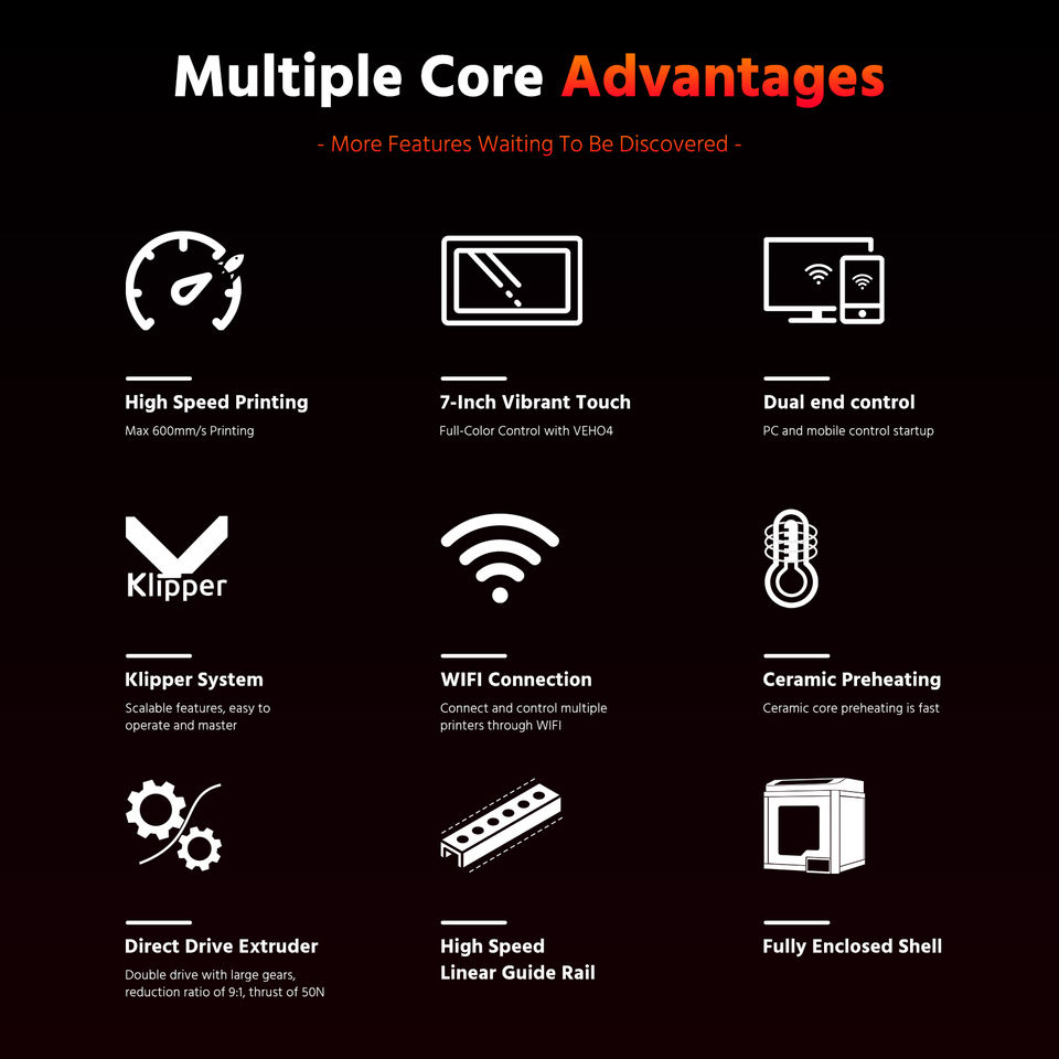 วัสดุสนับสนุน:ABS, เม็ดพลาสติก PETG, พลาสติกชีวภาพ PLA